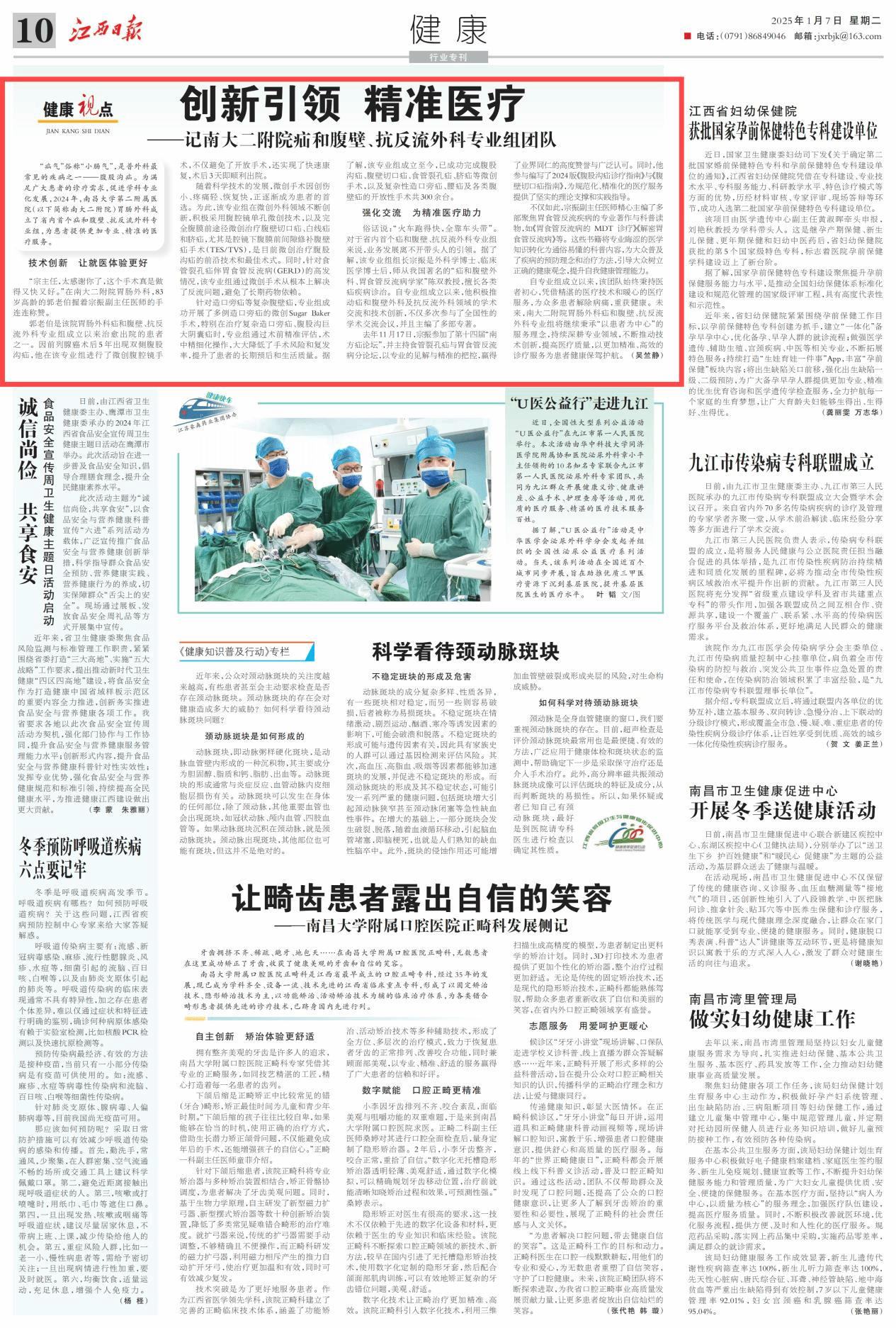 編者按:1月7日,《江西日報》第10版以《創新引領 精準醫療 ——記南大二附院疝和腹壁、抗反流外科專業組團隊》為題報道我校第二附屬醫院胃腸外科成立省內首個疝和腹壁、抗反流外科專業組,為患者提供更加專業、精準的醫療服務。詳情如下: