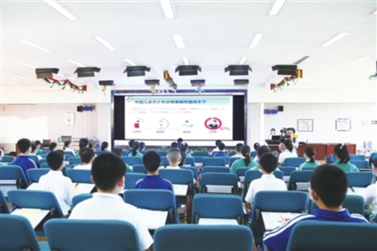 “除了遺傳因素外,近視主要和不良用眼習慣有關,比如近距離長時間閱讀、戶外活動時間不夠、看書做作業姿勢不對等。”劉新華深入淺出地講解了近視的形成和發展過程,強調了愛眼護眼的必要性,講解了近視的病因與危害,解讀了近視防控的誤區,并重點介紹了如何愛護眼睛、預防近視。